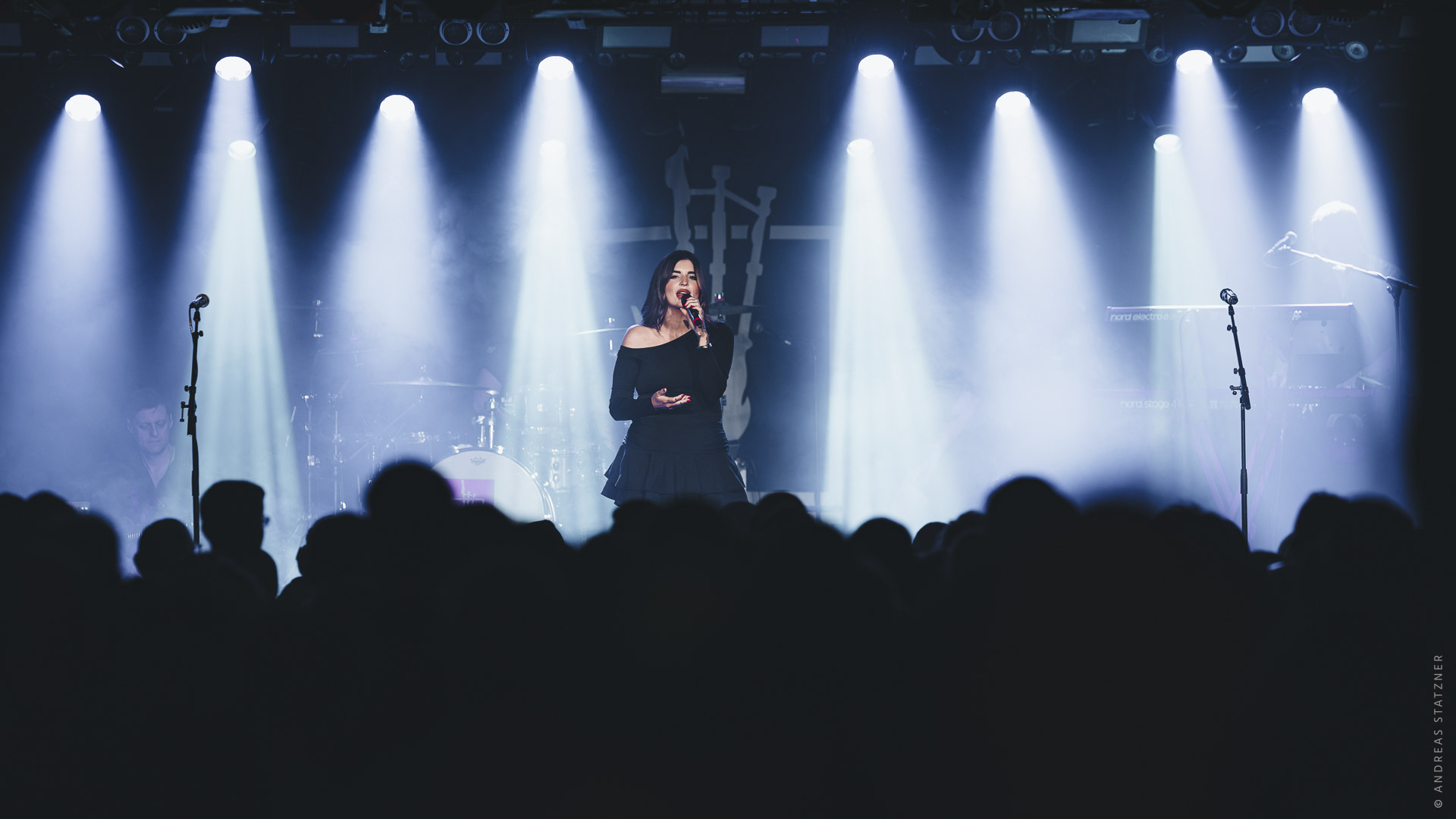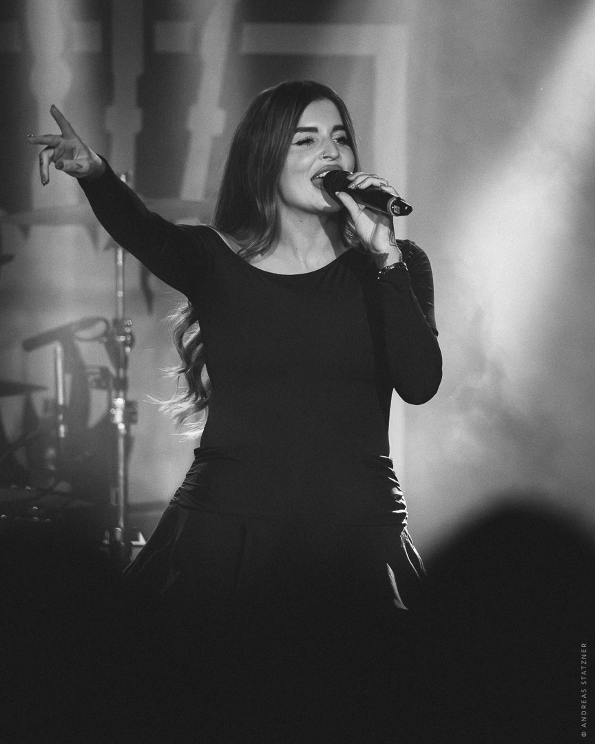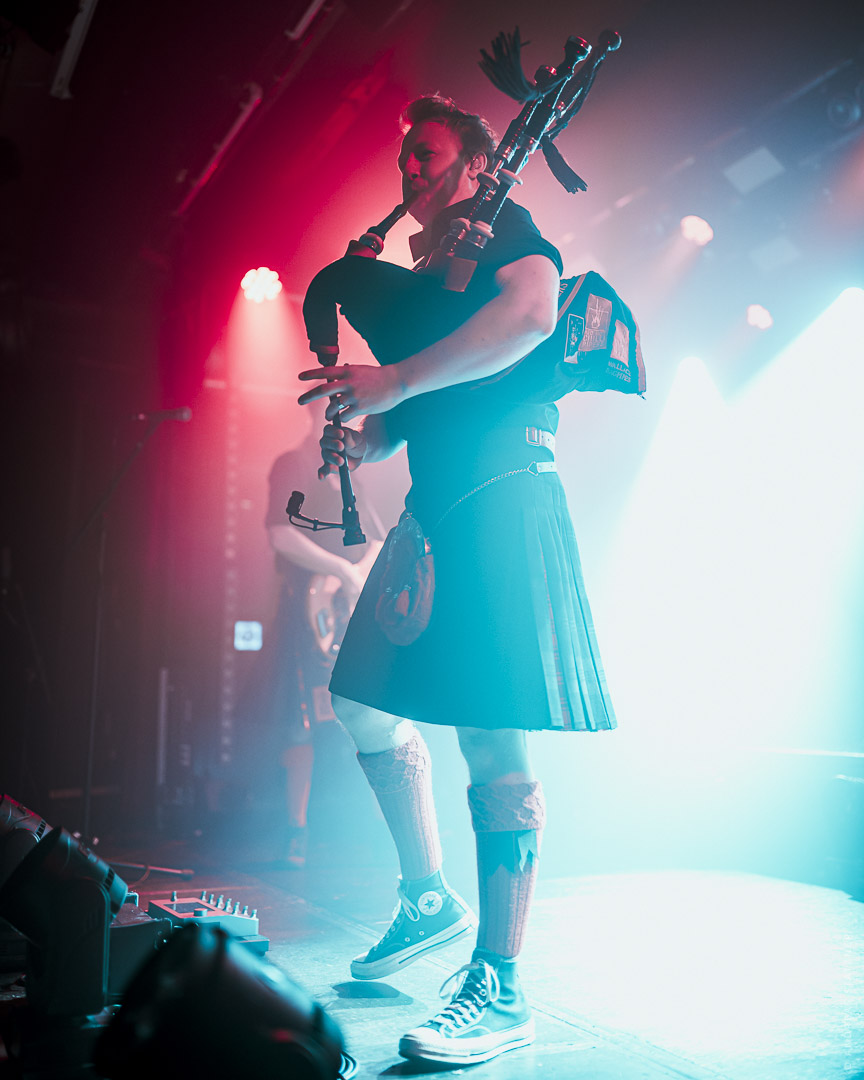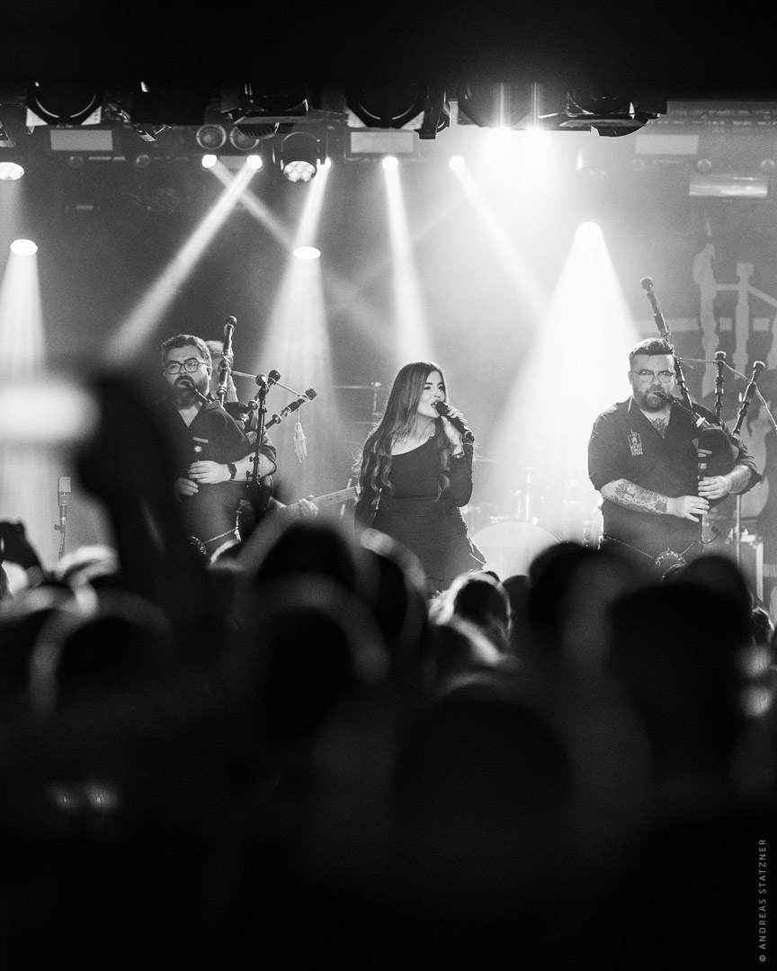 Ein zentrales musikalisches Element des Abends war Nicole Caldwell, deren ausdrucksstarke Vocals den Sound der Band entscheidend erweiterten. Mit ihrer kraftvollen, klaren Stimme setzte sie starke Akzente – besonders in Momenten, in denen Gesang und Dudelsäcke miteinander verschmolzen und den Songs zusätzliche Tiefe gaben.