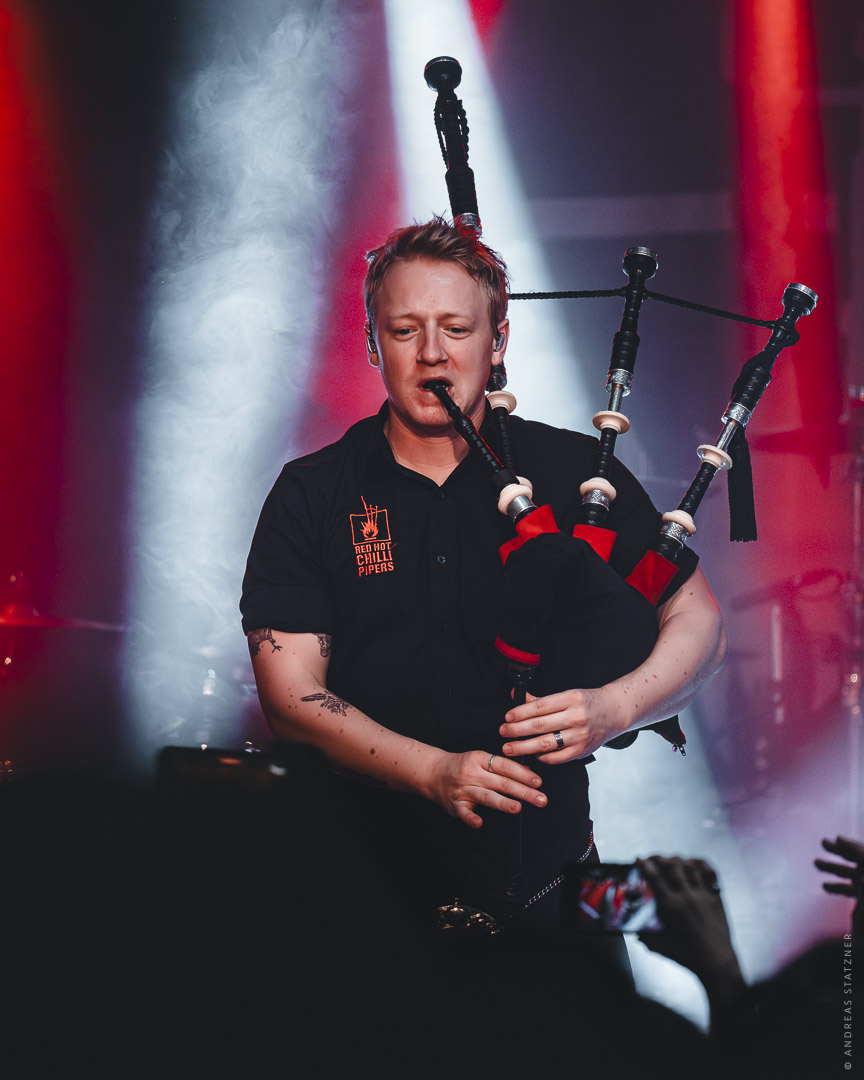 Die Red Hot Chilli Pipers lieferten im Colos-Saal Aschaffenburg eine Show voller Energie, Tempo und typischem „Bagrock“-Sound. Zwischen Dudelsack-Power, treibenden Drums und rockigen Gitarren sorgten sie für eine mitreißende Live-Atmosphäre.